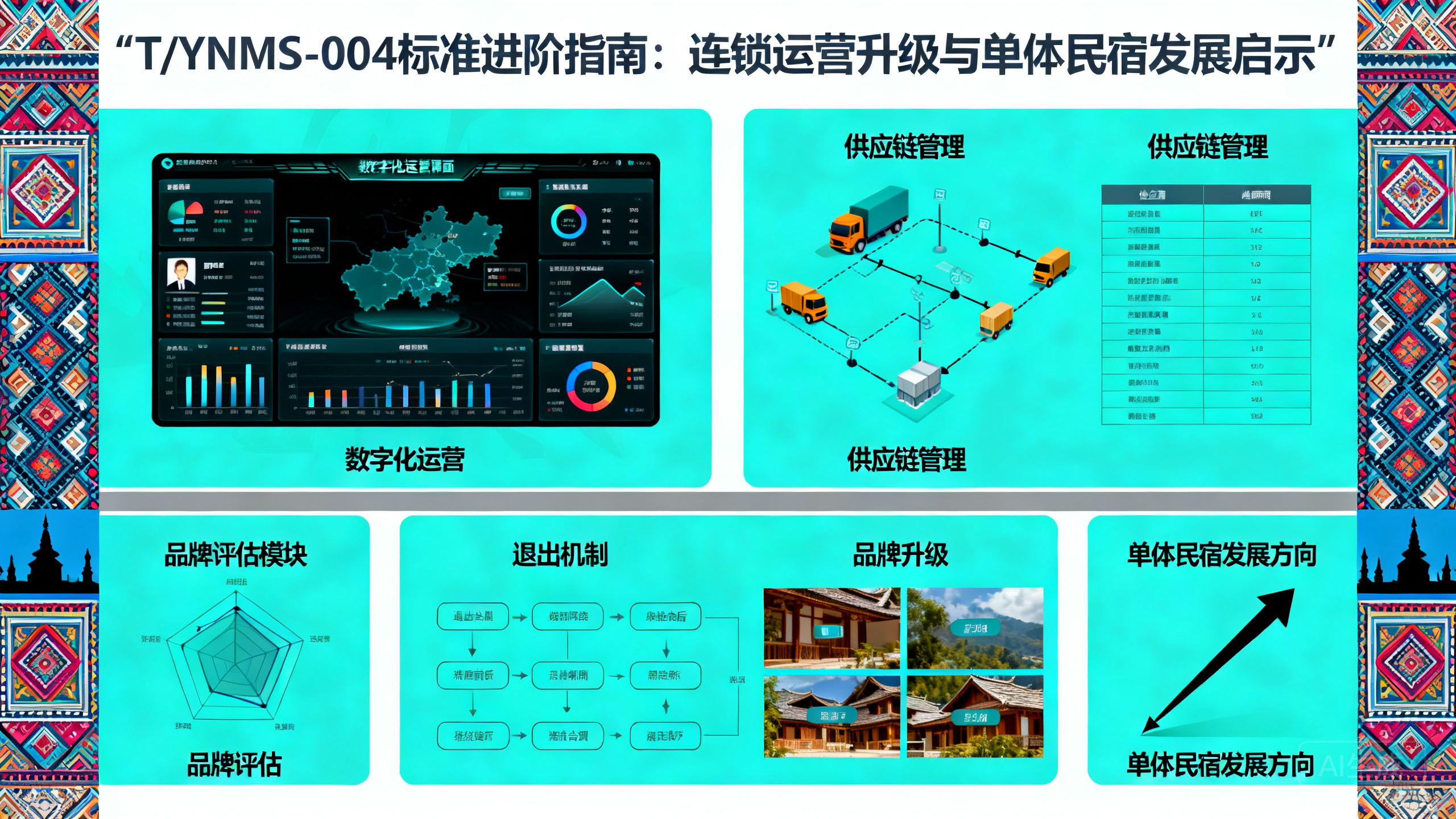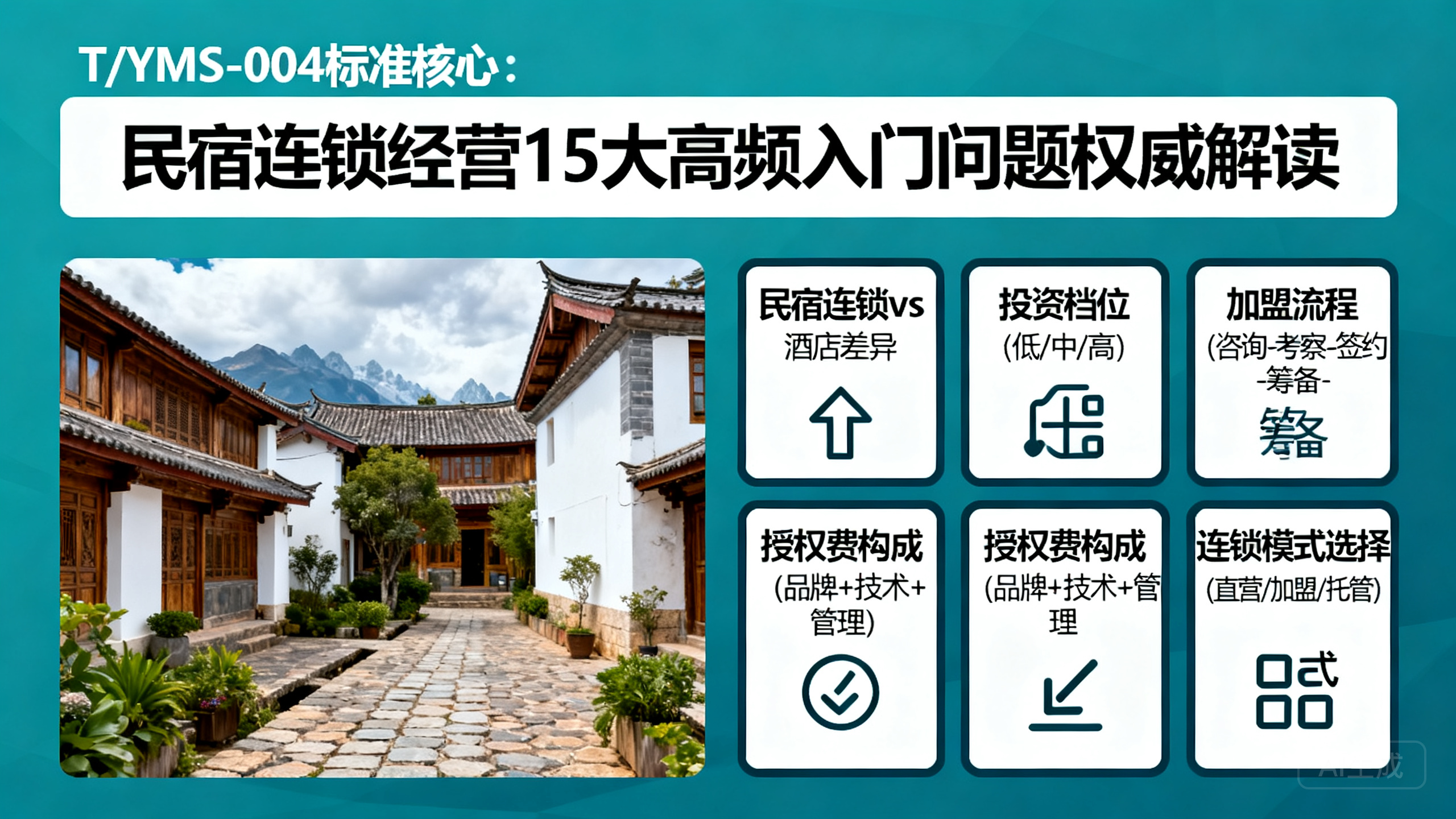 近年来,中国民宿行业经历了从野蛮生长到规范发展的深刻转型。据最新统计,云南全省民宿数量已超过11万家,位居全国前列。为进一步推动民宿品牌化、连锁化、规范化发展,云南省旅游民宿行业协会正式立项了T/YNMS-004《品牌民宿连锁发展与管理规范》团体标准,由云南丹青里企业管理有限公司作为主要起草单位,联合行业头部品牌共同编制,面向全国发布。本文围绕T/YNMS-004标准核心内容,梳理出经营者最关心的15个高频问题,逐一进行权威解答。