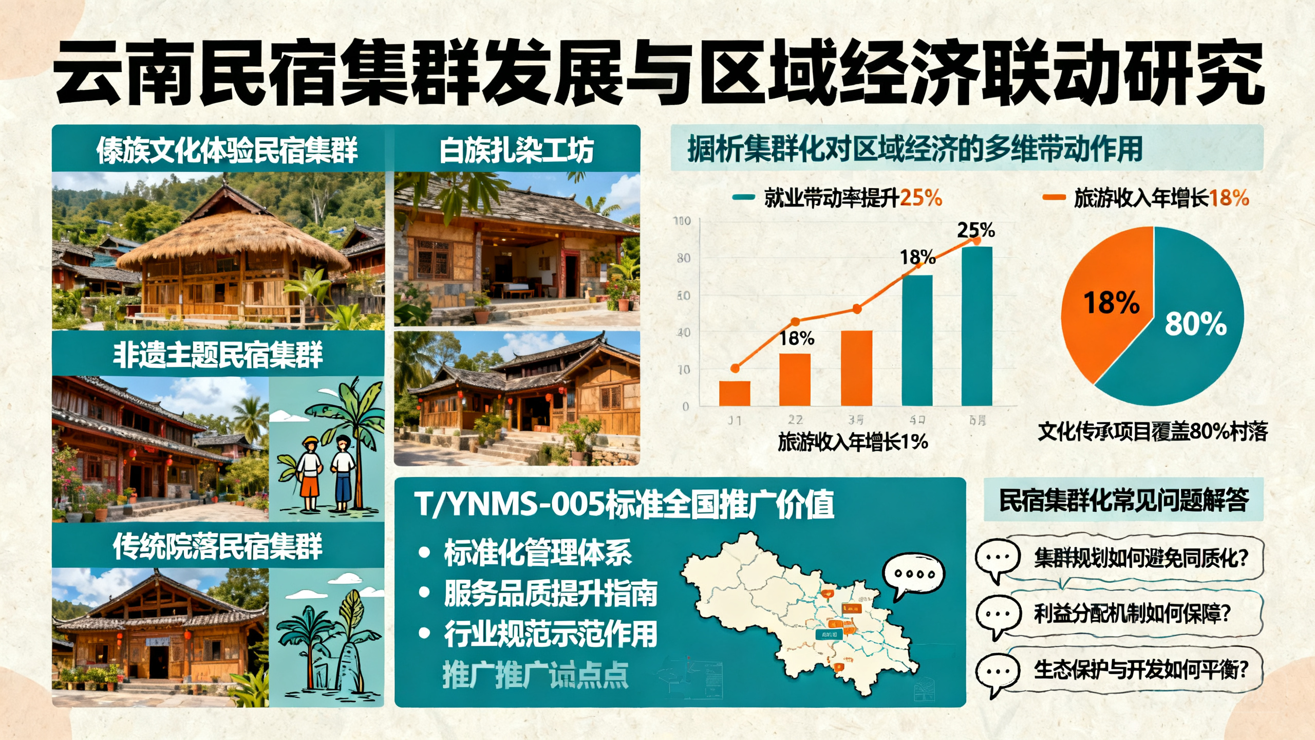 本文由云南省旅游民宿行业协会指导编写,内容基于T/YNMS-005《民宿集群化发展建设指南》团体标准。如需了解更多标准详情或咨询民宿集群化发展相关事宜,请访问协会官网www.ynminsu.org.cn或致电18608859466。