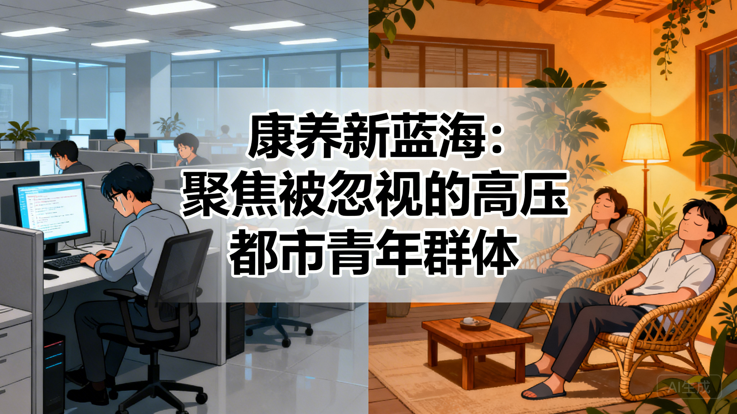 我们的行业,在谈及“康养”时,目光总是习惯性地投向银发一族。这当然是一个重要且广阔的市场,我们在前文中也已深度探讨。但今天,我想请各位同仁,将视线从“桑榆晚景”暂时移开,望向那些正值“青壮年华”,却已然身心俱疲的庞大群体——我们的企业家、互联网“大厂”的程序员、广告公司的创意人、以及每一个在KPI与DDL的夹缝中,奋力前行的都市白领。