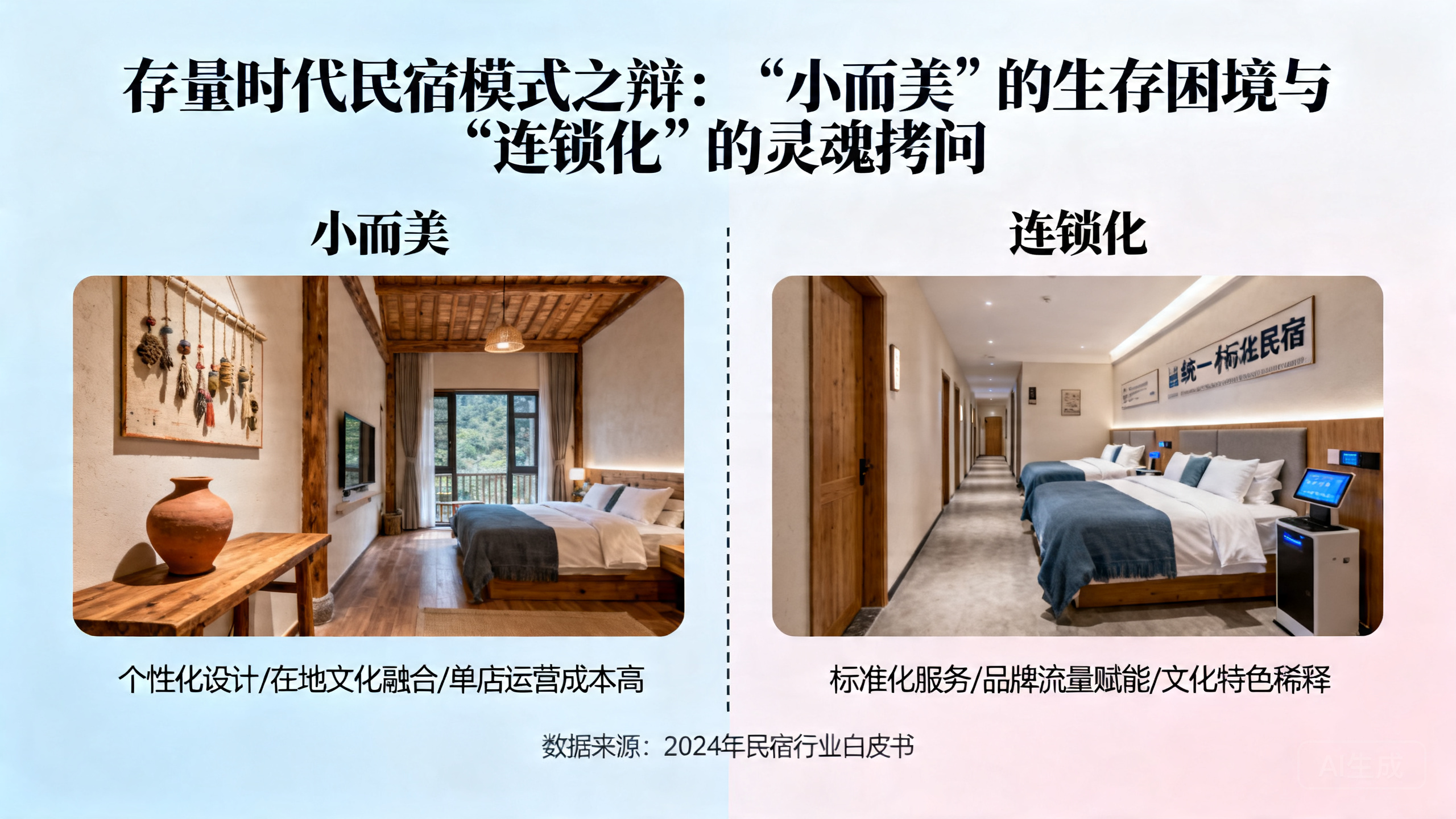 在民宿行业波澜壮阔的发展画卷中,“小而美”与“连锁化”始终是两种最主流、也最具争议的发展模式。它们如同一个硬币的两面,各自拥有一批坚定的拥趸和鲜明的价值主张。