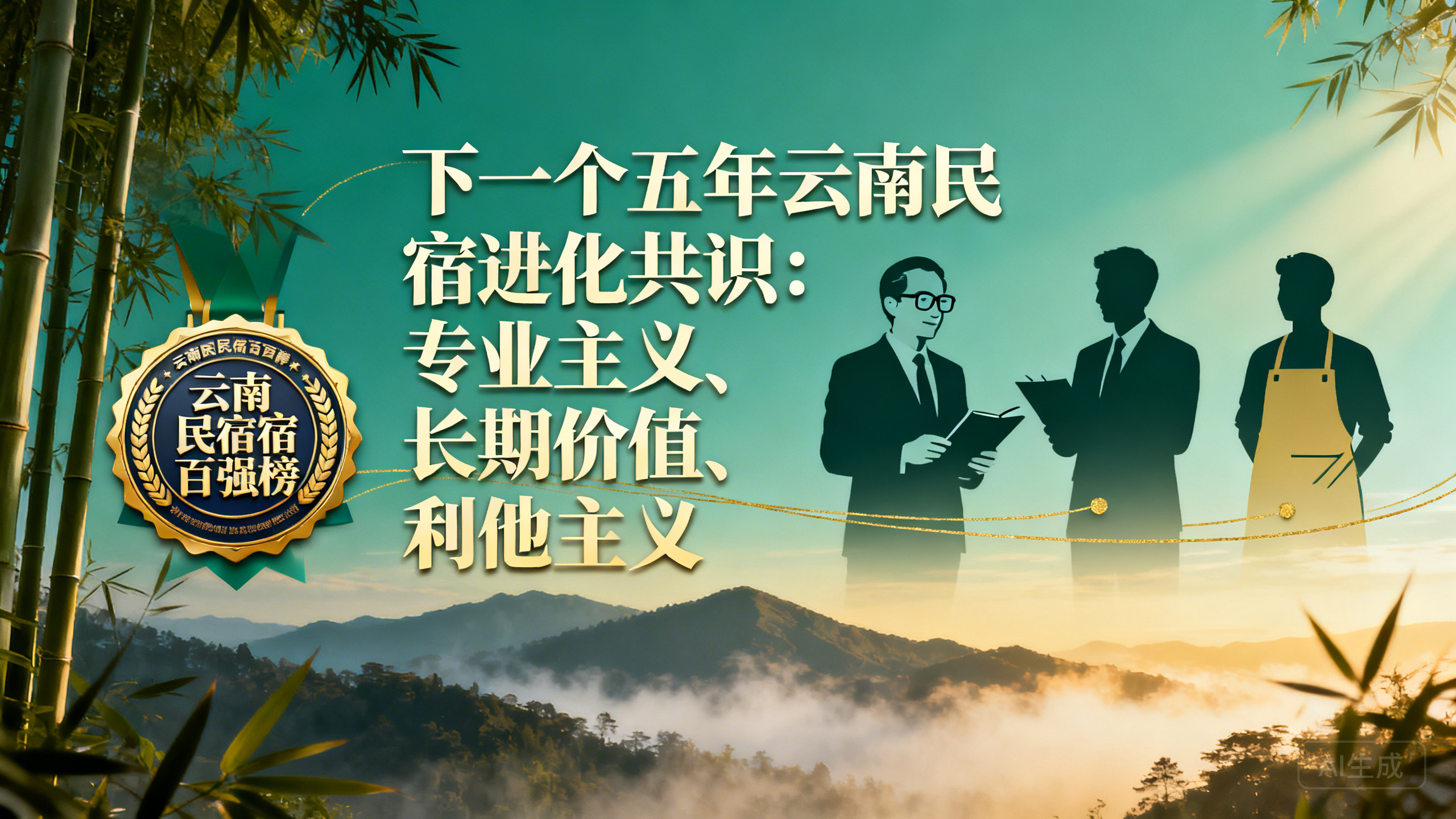 一线掌柜的结论是:下一个五年,我们将放下“我执”,以更谦卑的姿态,去聆听市场,去服务客人,去拥抱团队。因为我们知道,成就了他们,最终,才能成就我们自己。结语:星辰大海,路在脚下三份“真心话”,三种视角,却最终指向了同一个未来。下一个五年,云南民宿的进化方向,将是一场“专业主义”对“草根主义”的迭代,一场“长期价值”对“短期红利”的覆盖,一场“利他主义”对“自我主义”的超越。这,便是我们云南省旅游民宿行业协会,在今天,想要与全行业共同凝聚的“共识”。而这份“共识”,将被我们,一笔一划地,书写在我们即将全面展开的“云南民宿百强榜”的评选标准之中。这份榜单,将不再仅仅是一份荣誉,它将成为我们未来五年,引领整个行业“进化”的“北极星”。它将嘉奖: